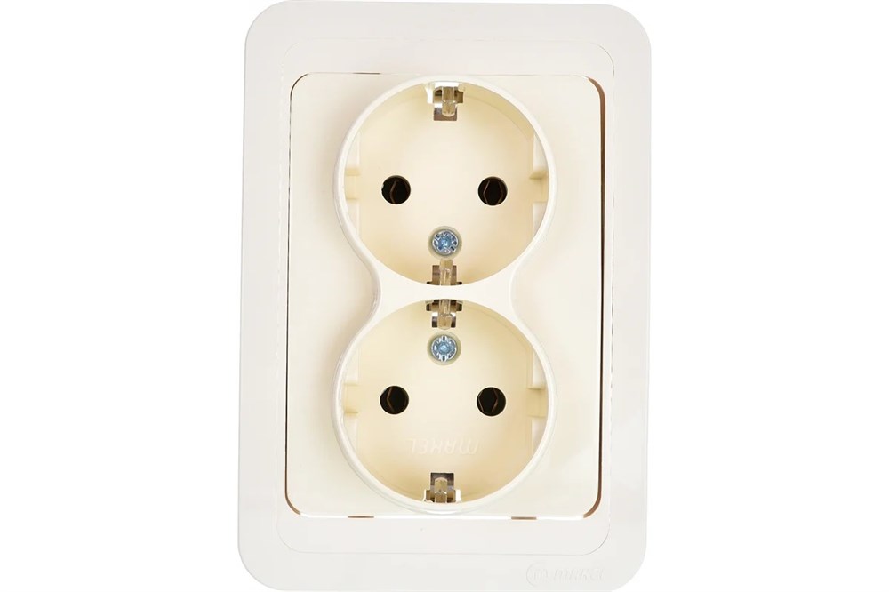 Розетка MAKEL Mimoza 25082, двухместная, встраиваемая, кремовая, с заземлением - купить в Орле недорого!