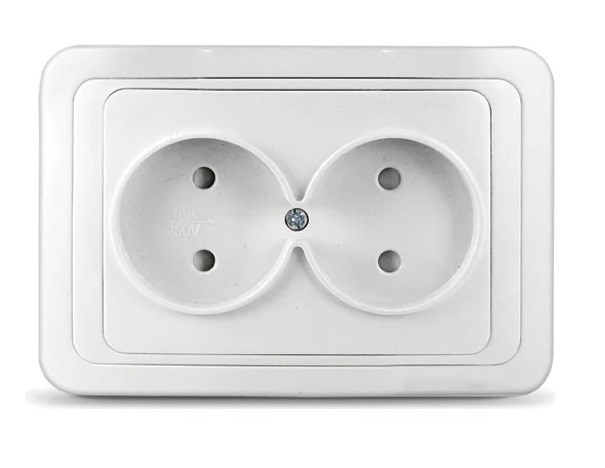 Розетка UNIVersal Валери В0102, двухместная, встраиваемая, белая, без заземления, с защитными шторками, еврослот - купить в Орле недорого!