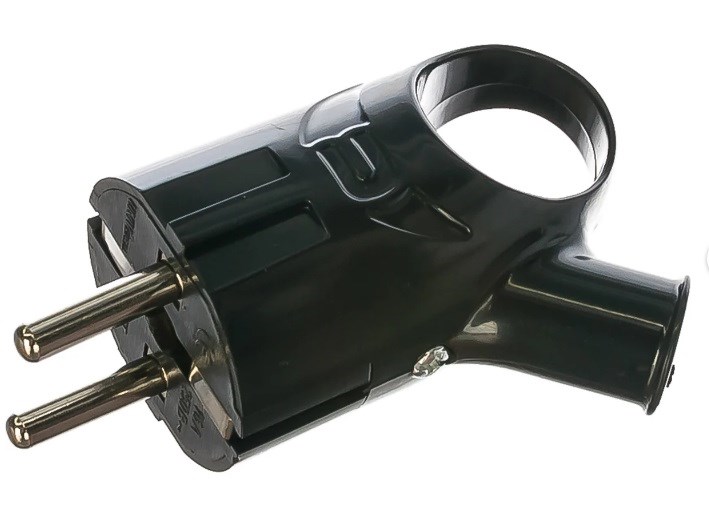 Вилка угловая UNIVersal А0112, 16А, 250В, IP20, с заземлением, с ушком, черная - купить в Орле недорого!