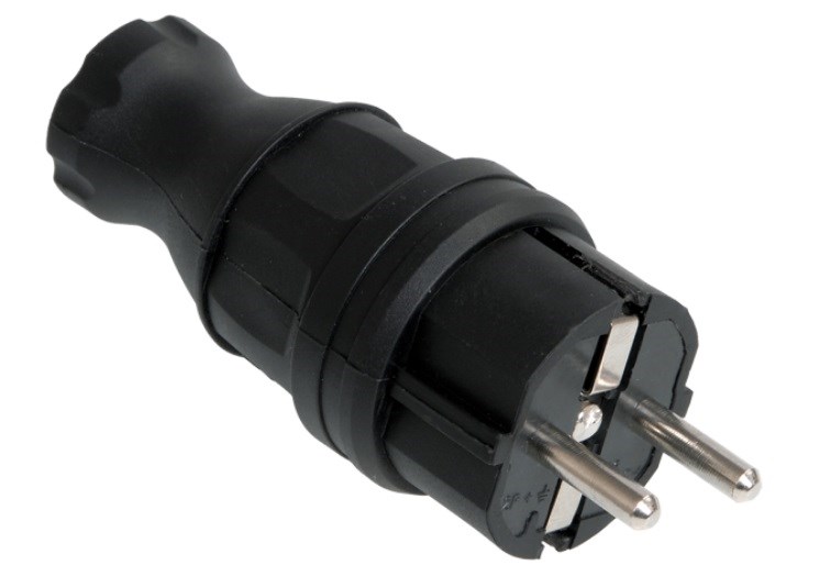 Вилка прямая IEK ОМЕГА RKR01-016-2-K02, 16А, 250В, IP44, с заземлением, каучук, черная - купить в Орле недорого!