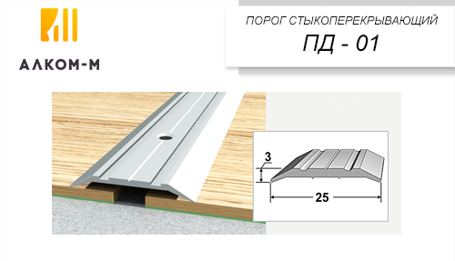 Порожек выполнен из прочного сплава алюминия способного выдержит высокую проходимость людей и провоз тяжёлых тележек. Использование данного профиля, лучше всего подойдёт для коммерческих помещений, ведь анодированное покрытие наиболее устойчиво к царапинам в отличие от ламинированного или крашенного. Профиль точно такой же формы вы можете купить в нашем магазине с крашенным или ламинированным покрытием под дерево. Разнообразная цветовая гамма порога, имитирующая рисунок дерева, позволит подобрать профиль в цвет пола, что сделает стык максимально незаметным.