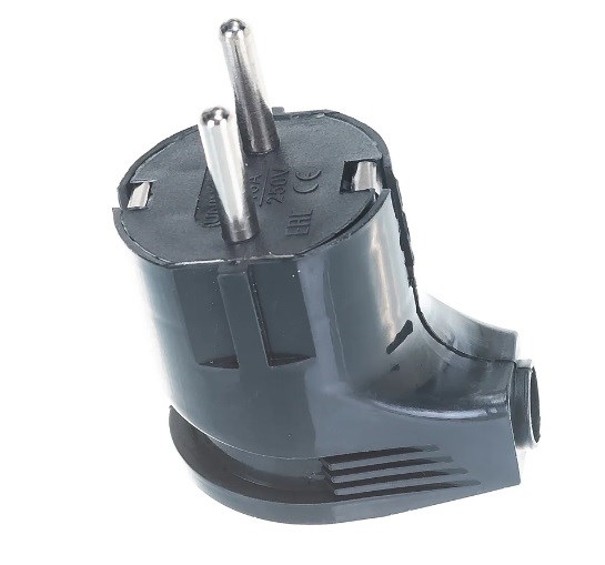 Вилка угловая UNIVersal А0105, 16А, 250В, IP20, с заземлением, черная - купить в Орле недорого!