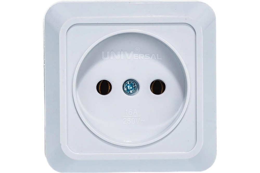 Розетка без заземления, белая - простое в установке электротехническое устройство накладного типа. Розетка имеет классический дизайн и цвет, идеально подойдет для монтажа в помещениях любого типа.