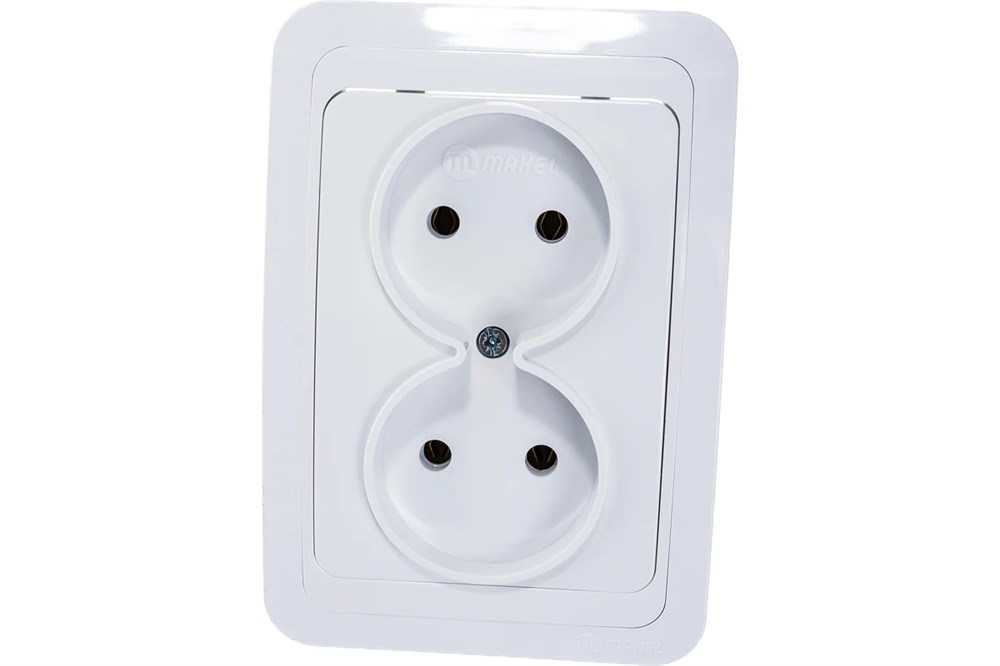 Розетка MAKEL Mimoza 12017, двухместная, встраиваемая, белая, без заземления - купить в Орле недорого!