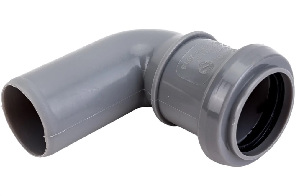 Отвод для внутренней канализации, 40мм, 90 градусов, полипропиленовый, серый