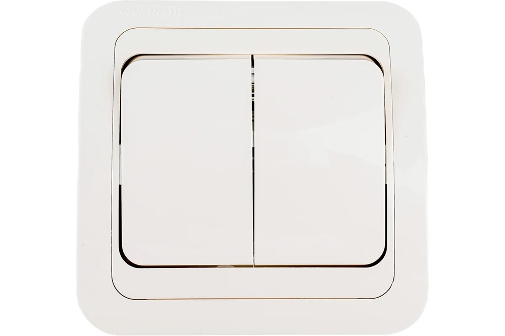Двухклавишный выключатель характеризуется высокой степенью защиты от попадания внутрь изделия капель воды, частиц мусора и пыли. Изделие изготовлено из высококачественного пластика. Выполнено в кремовом цвете.