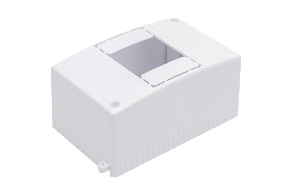 Белый четырехмодульный бокс изготовлен из термостойкого пластика и обеспечивает высокую степень защиты IP30. Он служит для защиты персонала от поражения электрическим током.