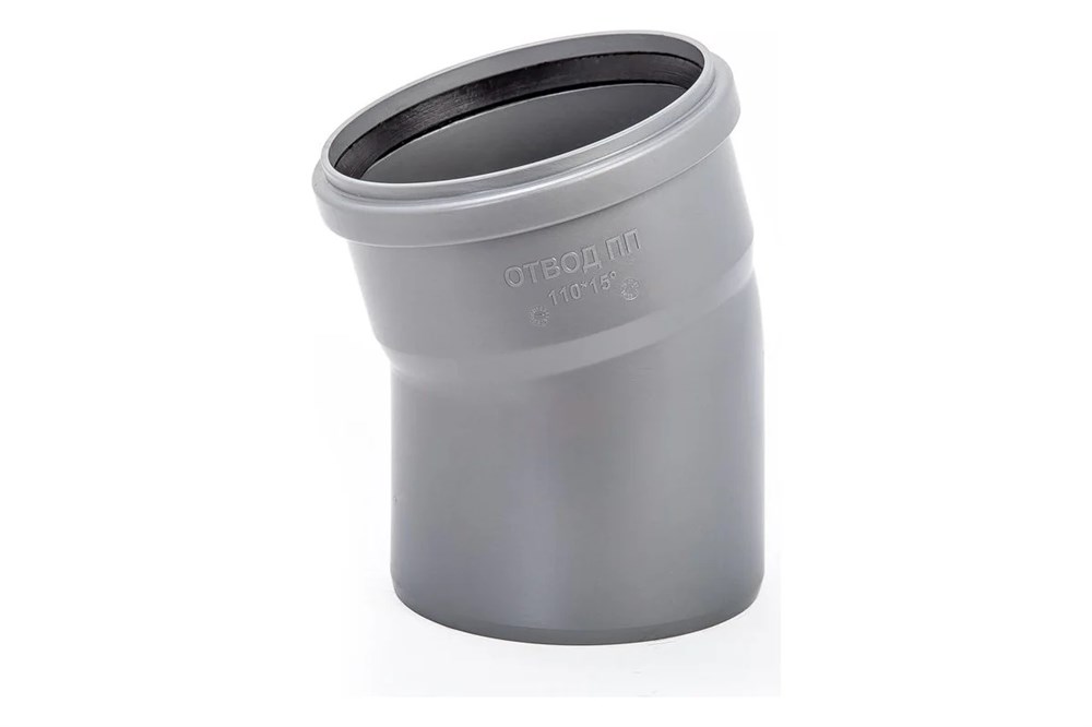 Отвод для внутренней канализации, 110мм, 15 градусов, полипропиленовый, серый