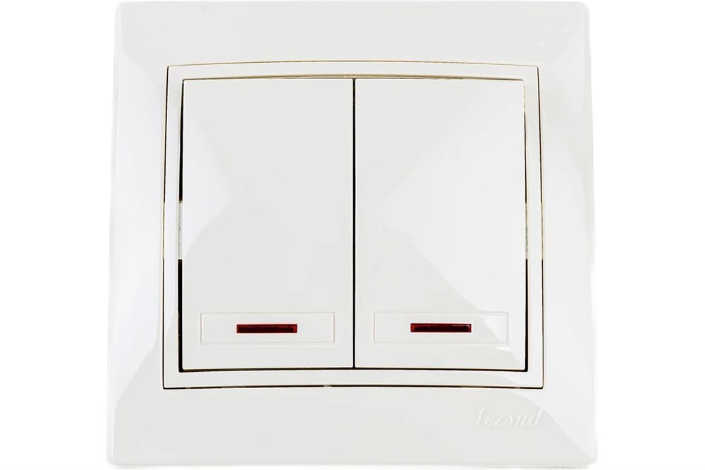 Выключатель LEZARD MIRA 701-0303-112, двухклавишный, встраиваемый, кремовый, с подсветкой - купить в Орле недорого!