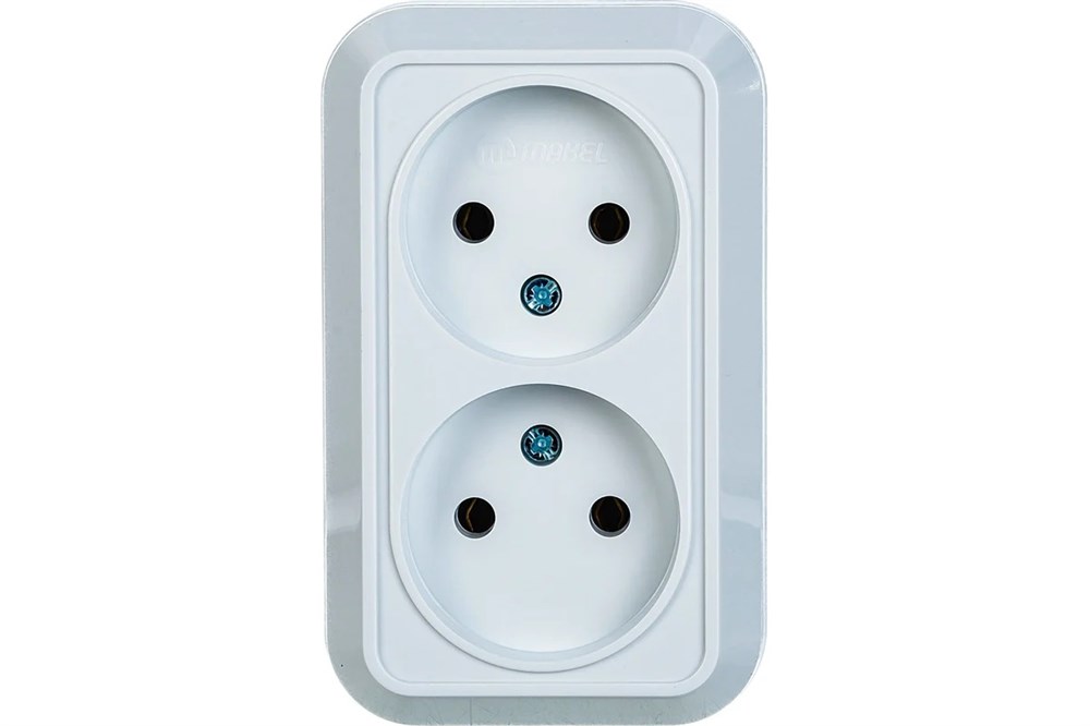 Розетка MAKEL 45117, двухместная, накладная, белая, без заземления - купить в Орле недорого!
