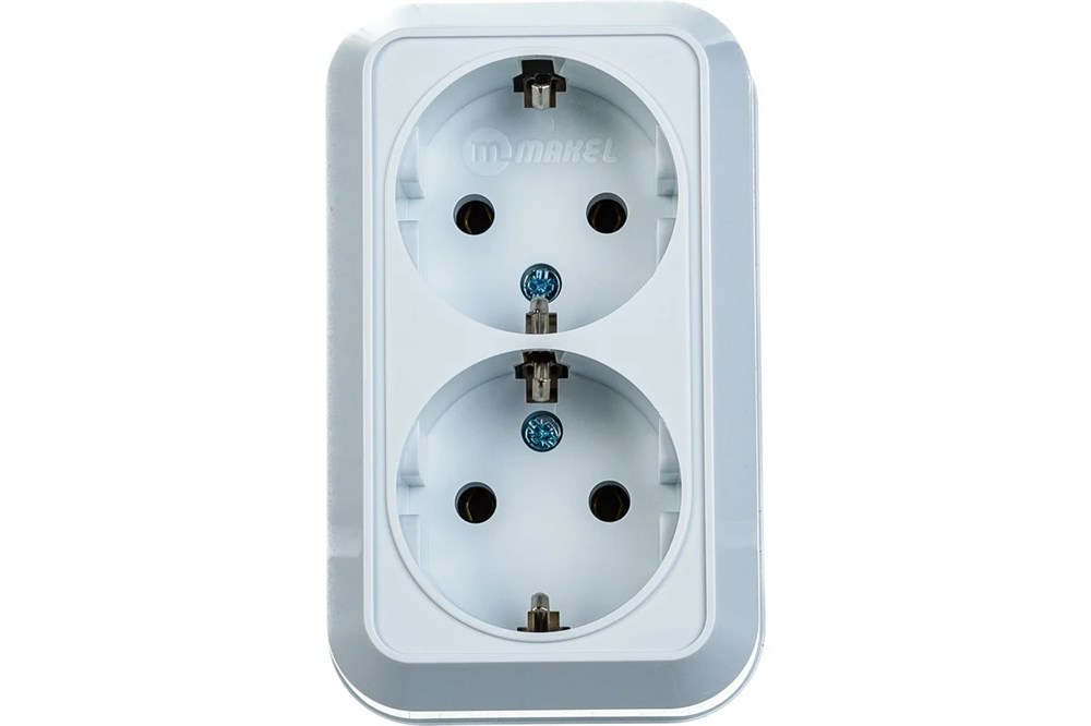 Розетка MAKEL 45182, двухместная, накладная, белая, с заземлением - купить в Орле недорого!
