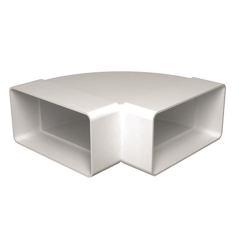 Колено плоское горизонтальное Era КГП предназначено для соединения двух пластиковых воздуховодов под углом 90 градусов. Соединение осуществляется в горизонтальной плоскости, воздуховоды и колено соединяются напрямую.