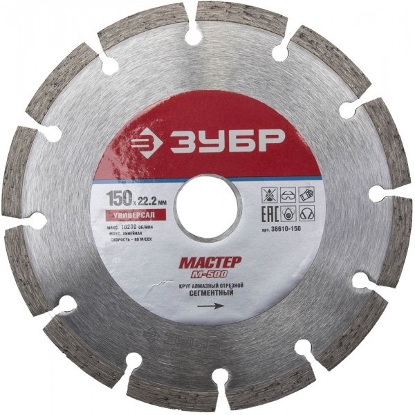 Диск отрезной алмазный Зубр Мастер, 150x22.2мм, сегментный, сухая резка - купить в Орле по выгодной цене!