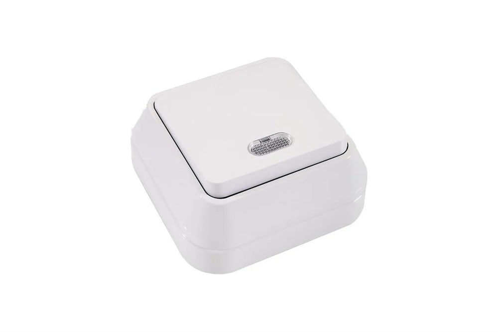 Выключатель MAKEL Siva Ustu 45121, одноклавишный, накладной, белый, с подсветкой - купить в Орле недорого!