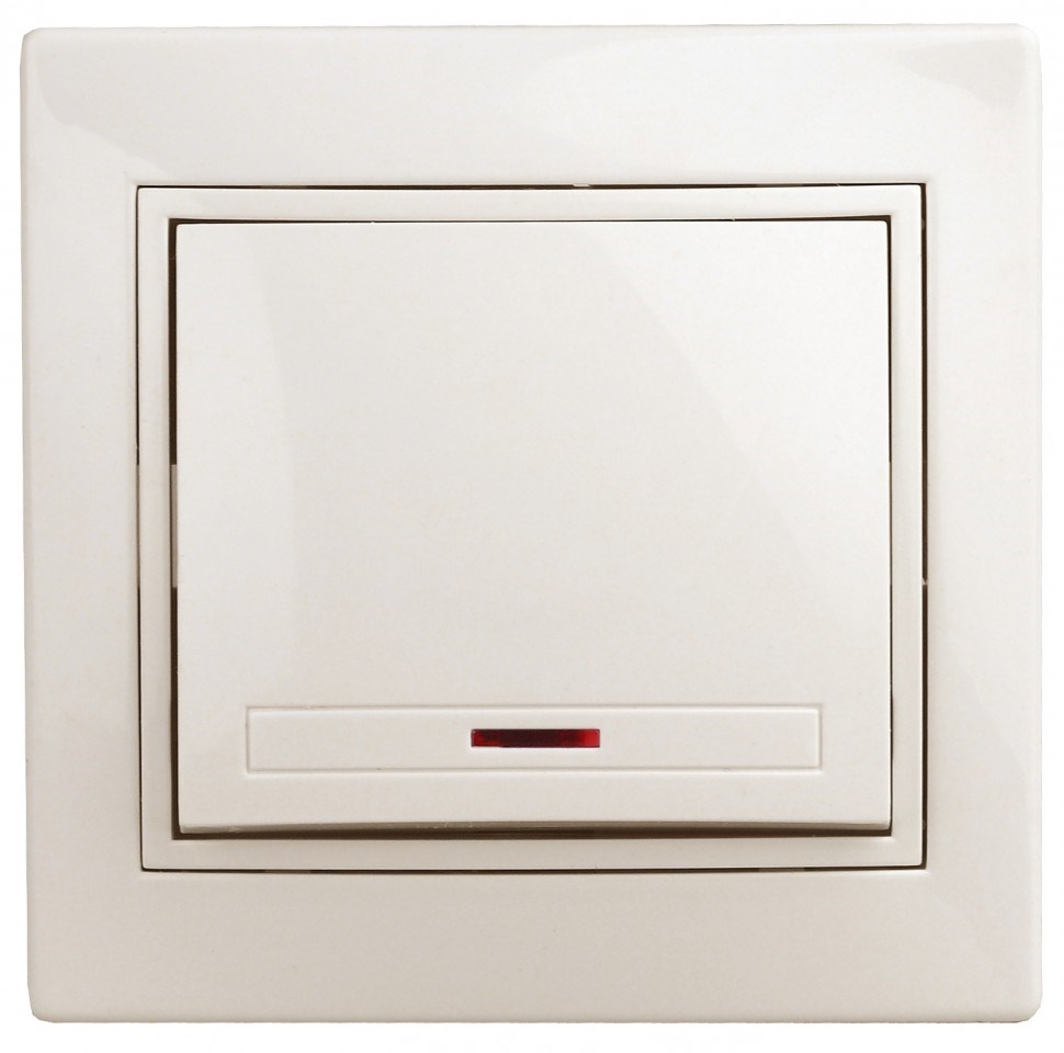 Одноклавишный выключатель с подсветкой - коммутационное устройство для включения и выключения люстр и светильников в помещениях различного назначения. Выключатель выполнен из качественного термопласта, стали и латуни, оснащён винтовыми зажимами.