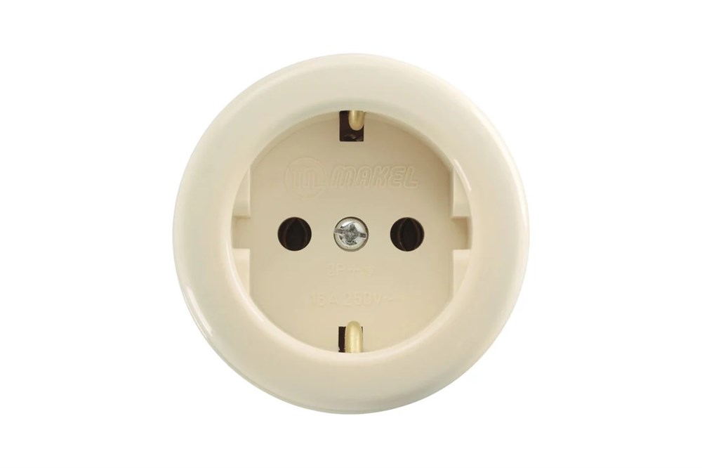 Розетка MAKEL 16011, одноместная, накладная, белая, с заземлением, круглая - купить в Орле недорого!