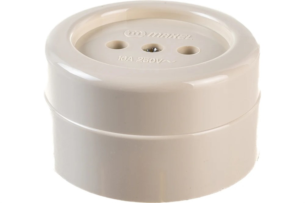 Розетка MAKEL 16012, одноместная, накладная, белая, без заземления, круглая - купить в Орле недорого!