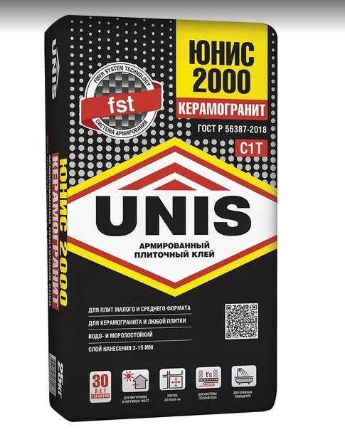 Клей для плитки Unis 2000 универсальный монтажный применяется для наклеивания плитки на различные основания и для монтажных работ. Позволяет вести кладочные работы и создавать кладку из блоков ячеистого бетона. Сухие смеси такого вида отличаются высокой адгезией и эластичностью, являются морозоустойчивыми, атмосфероустойчивыми и влагоустойчивыми смесями. Клей Юнис 2000 не содержит в своем составе вредных веществ, он может использоваться как внутри помещения, так и снаружи.