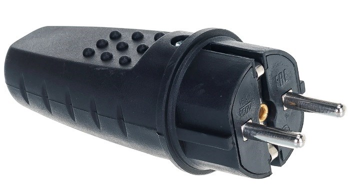 Вилка прямая UNIVersal 602227, 2Р+РЕ, 16А, 220-240В, IP44, с заземлением, каучук, черная - купить в Орле недорого!