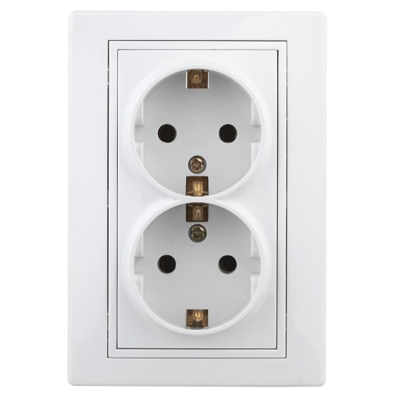 Розетка ЭРА Intro Plano 1-205-01, двухместная, встраиваемая, белая, с заземлением - купить в Орле недорого!