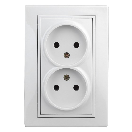 Розетка выполнена из керамики, укомплектована одноместной рамкой, оснащена винтовыми клеммами. Клеммы с двумя отверстиями позволяют соединять соседние розетки шлейфом. Установка в подрозетник производится как на монтажные лапки, так и на винты.