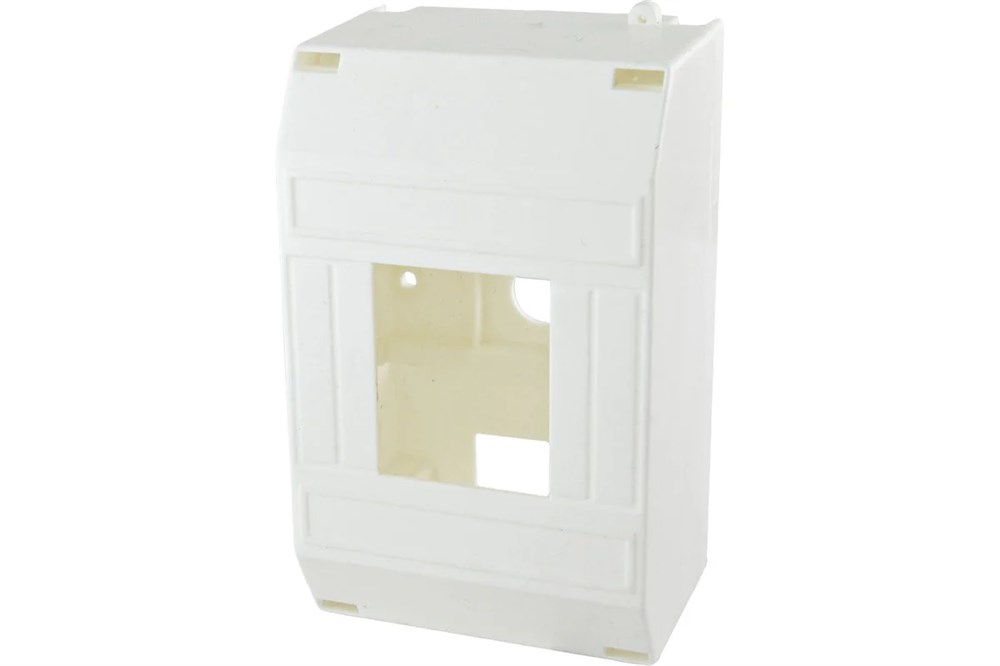 Пространство вверху и внизу бокса позволяет легко осуществлять монтаж и дает возможность размещения дополнительных приборов распределения (клеммников, сжимов и т.д.), ввод кабелей происходит через выламываемые отверстия, а крепление приборов выполняется на вмонтированную DIN-рейку. Есть возможность полной пломбировки корпуса, что позволяет использовать его для установки устройств учета (счетчиков и т.д.).