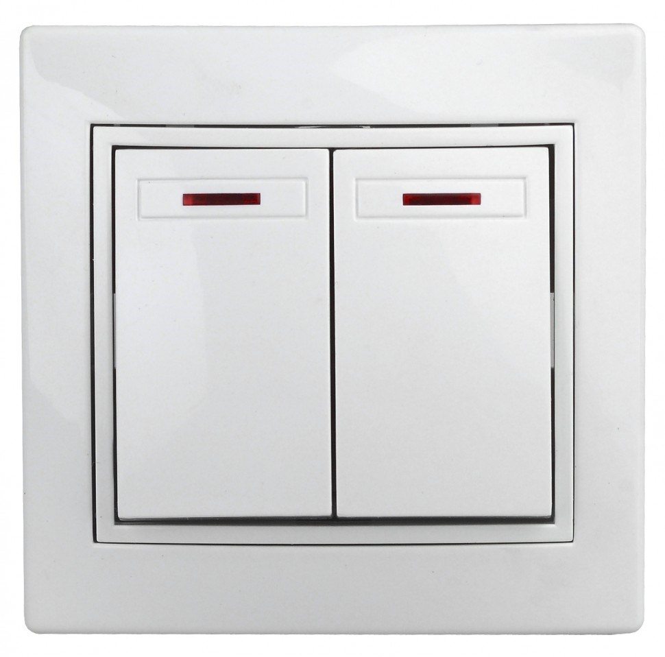 Двухклавишный выключатель с подсветкой - коммутационное устройство для включения и выключения люстр и светильников в помещениях различного назначения. Выключатель выполнен из качественного термопласта, стали и латуни, оснащён винтовыми зажимами.