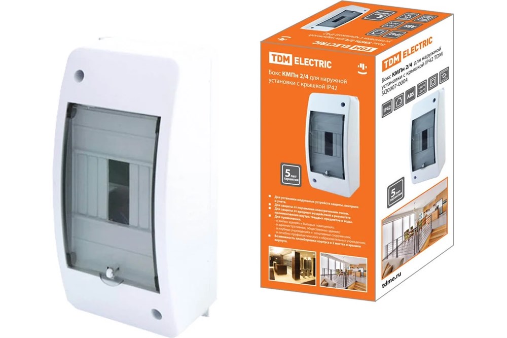 Щит распределительный для открытой проводки TDM SQ0907-0004 КМПн 2/4, на 4 модуля, с крышкой - купить в Орле недорого!
