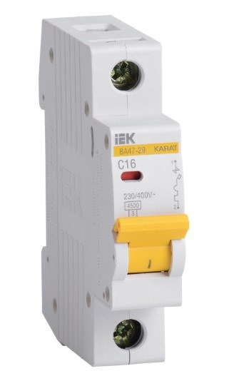 Выключатель автоматический IEK KARAT ВА 47-29, однополюсный 1Р, 16А, 4.5кА - купить в Орле недорого!