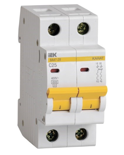 Выключатель автоматический IEK KARAT ВА 47-29, двухполюсный 2Р, 25А, 4.5кА - купить в Орле недорого!