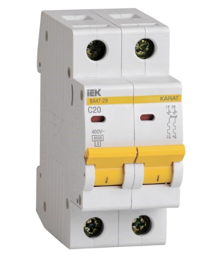 Выключатель автоматический IEK KARAT ВА 47-29, двухполюсный 2Р, 20А, 4.5кА - купить в Орле недорого!