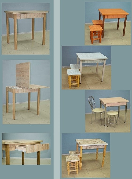Стол обеденный раскладной с ящиком изготовлен из ЛДСП. Отличается простотой применения и сборки. Небольшой размер позволяет разместить даже на самой маленькой кухне.