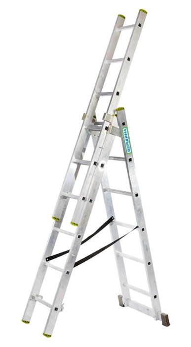 Лестница универсальная, трехсекционная, 3х8 ступеней, высота 2.24-5.04м, алюминиевая
