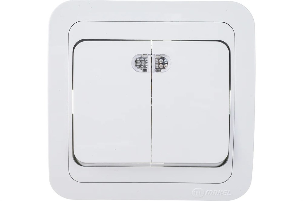 Выключатель MAKEL Mimoza 12023, двухклавишный, встраиваемый, белый, с подсветкой - купить в Орле недорого!