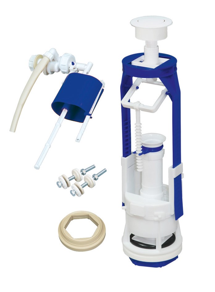 Арматура для бачка унитаза РБМ АС-16.2, штоковая, боковая подводка воды, белая кнопка