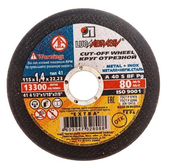 Круг отрезной Луга предназначен для ручных резчиков. Применяется для высокопроизводительной резки деталей и конструкций из различных марок стали и быстрорежущей стали. Круг особенно эффективен при резке тонкостенного профиля и листового металла.