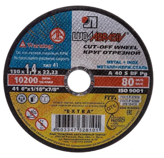 Круг отрезной Луга предназначен для ручных резчиков. Применяется для высокопроизводительной резки деталей и конструкций из различных марок стали и быстрорежущей стали. Круг особенно эффективен при резке тонкостенного профиля и листового металла.