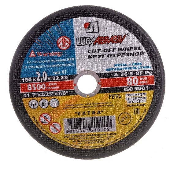 Круг отрезной Луга предназначен для ручных резчиков. Применяется для высокопроизводительной резки деталей и конструкций из различных марок стали и быстрорежущей стали. Круг особенно эффективен при резке тонкостенного профиля и листового металла.