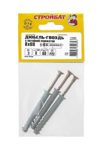 Дюбель-гвоздь быстрый монтаж 8х60мм, с потайным бортиком, упаковка 3шт - купить в Орле недорого!