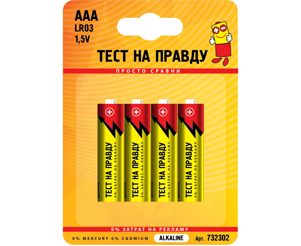 Элемент питания (батарейка) ТЕСТ НА ПРАВДУ LR03/286 BL24, мизинчиковый, щелочной, 1.5В, 4шт. в блистере