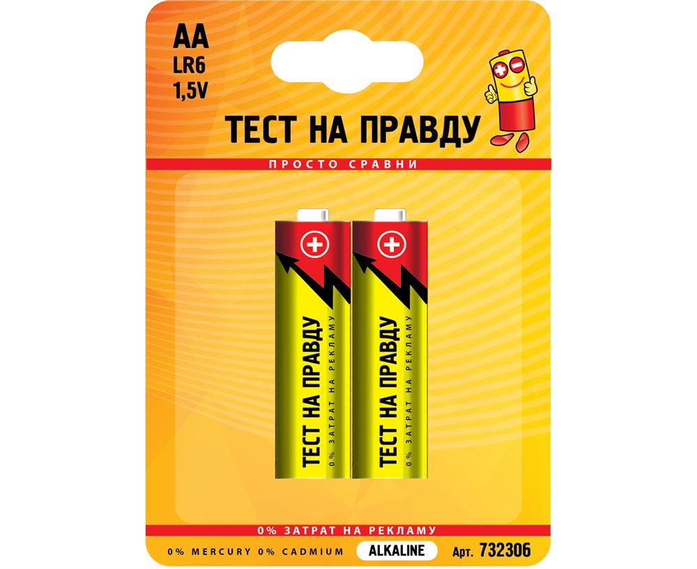 Элемент питания (батарейка) ТЕСТ НА ПРАВДУ LR06/316 BL2, пальчиковый, щелочной, 1.5В, 2шт. в блистере