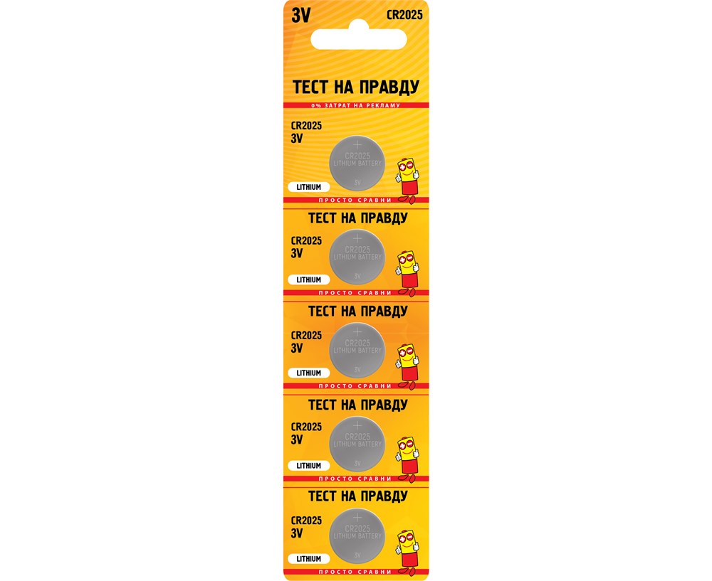 Элемент питания (батарейка) ТЕСТ НА ПРАВДУ СR 2025, таблетка, литиевый, 3В, поштучно
