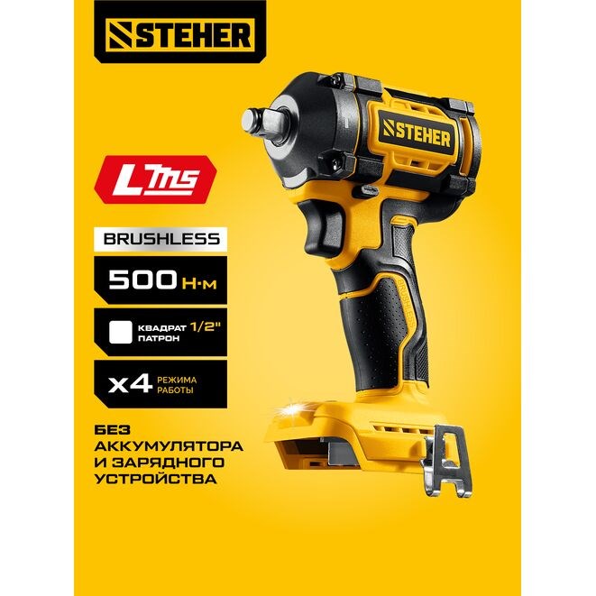 Гайковерт ударный STEHER CWB-500, аккумуляторный, 20В, 500Н-м, без АКБ