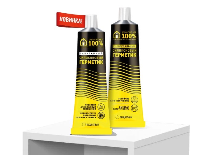 Ремонт на 100% – однокомпонентный универсальный силиконовый герметик кислотного типа. Отвердевает при комнатной температуре.