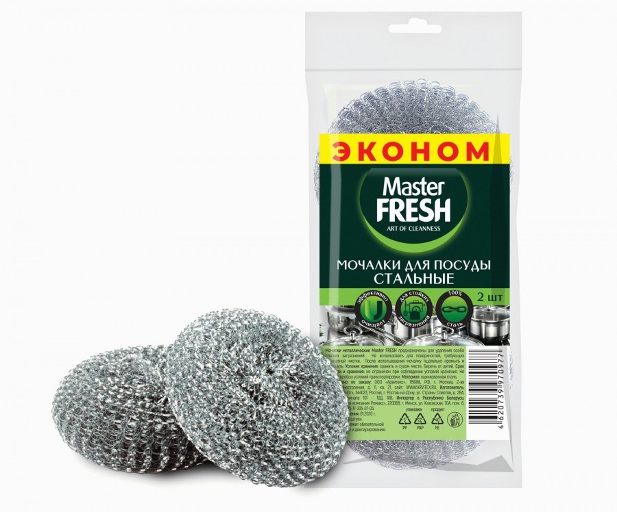 Губка для посуды Master FRESH Parlo С0006108 Эконом, диаметр 70мм, металлическая, набор 2шт.