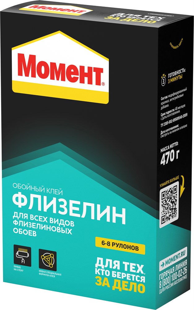 Клей для флизелиновых обоев Момент Флизелин, 470г, картон