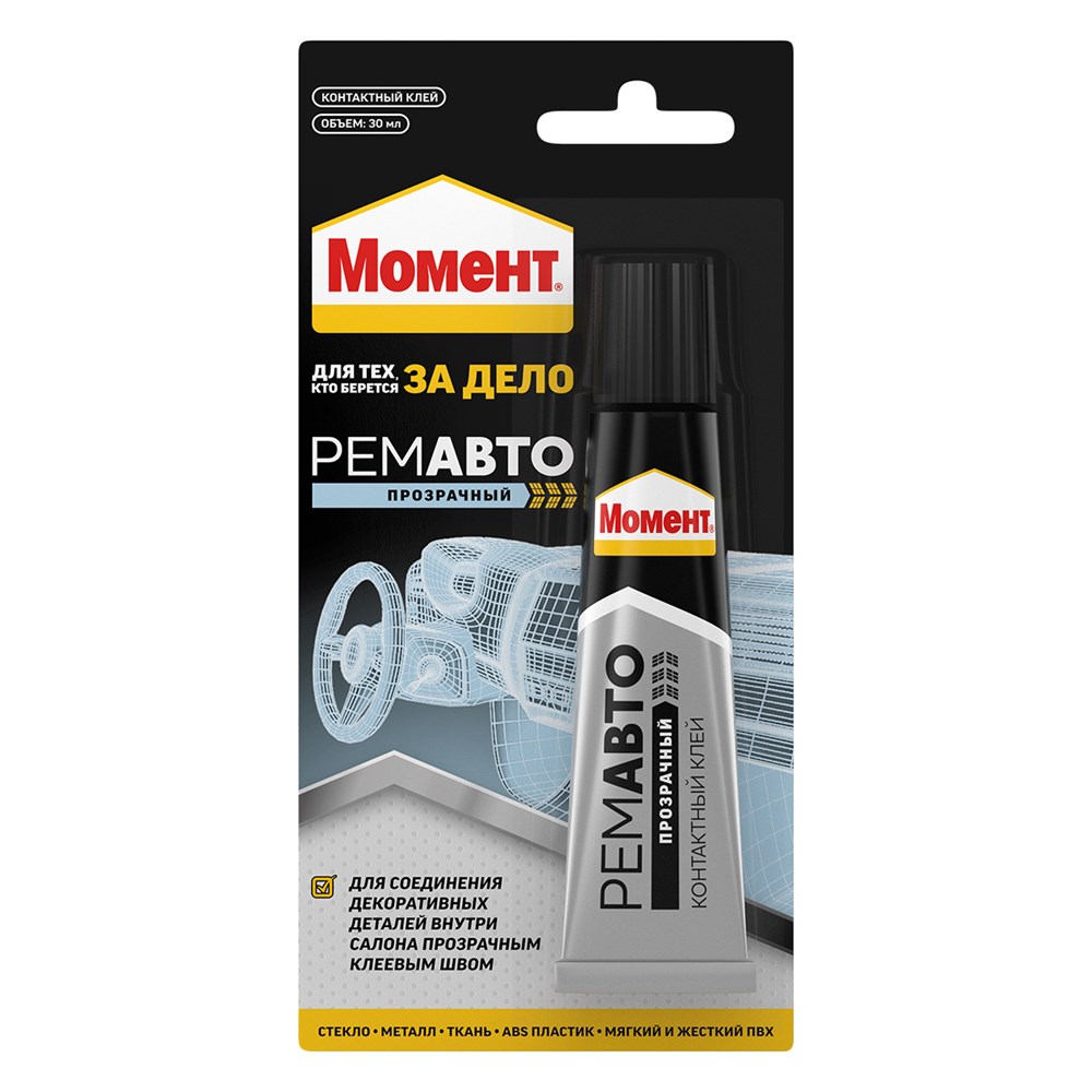 Идеален для локального авторемонта: склеивания декоративных деталей внутри салона прозрачным клеевым швом.