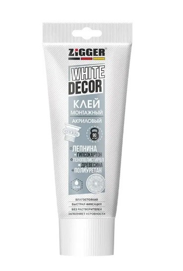 ZIGGER WHITE DECOR - монтажный клей для декора на основе водной дисперсии акрилового сополимера.