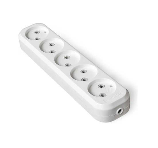 Колодка для удлинителя UNIVersal Е205, пятиместная, 10А, 250В, IP20, без заземления, белая