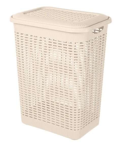 Корзина для белья Econova 431293307, 30л, 370x260x465мм, пластиковая, бежевый, откидная крышка - купить в Орле недорого!